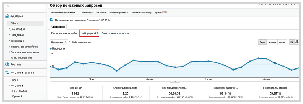 Обязательно проверьте корректность настройки целей. Для этого спустя некоторое время после сохранения отчета перейдите на вкладку «Стандартные отчеты», выберите отчет «Конверсии», и в нем — отчет «Цели → Обзор».